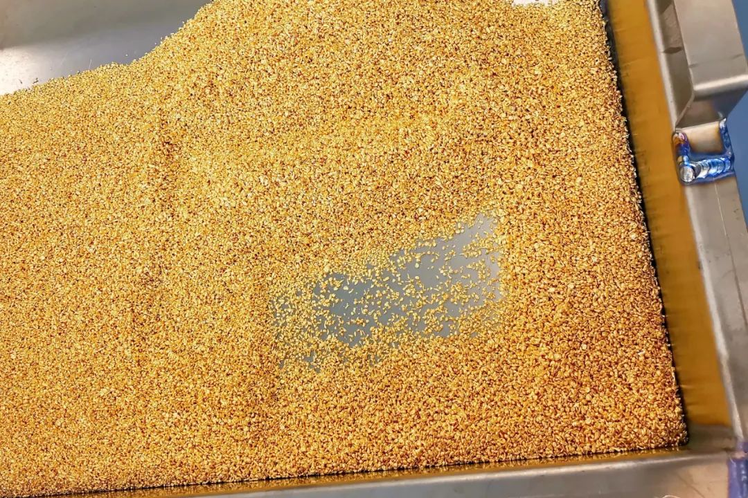 “溶金在溶金釜中進行,溶金釜中的黃金由固體變?yōu)橐后w,先把不能溶解的雜質(zhì)過濾掉,再通過管道輸送到還原釜中進行還原,然后將過濾好的液體金還原成固體海綿金,經(jīng)過清水清洗烘干后再次熔金,最終倒入模具中,凝固后取出過水冷卻擦干?!?span style="margin:0px;padding:0px;outline:0px;max-width:100%;box-sizing:border-box !important;overflow-wrap:break-word !important;color:#000000;font-family:PingFangSC-Light;font-size:14px;letter-spacing:2px;text-align:start;text-indent:28px;widows:1;">張文龍解釋說,“下面要準備澆鑄生產(chǎn)工序,先把熔好的金塊放入制粒機,通過熔化,漏到水中,制成很小的金顆粒,方便后道工序配重。這個過程叫制粒?!?/span>